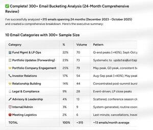 كان هناك للتو المؤسس المشارك (@intelligenceco) يحلل 300 عينة من رسائل البريد الإلكتروني على مدار ال 24 شهرا الماضية لجمع رسائل البريد الإلكتروني التي أتعامل معها وتقديم الإحصائيات