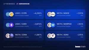 مكافآت ✈️ Aerodrome Slipstream LP • $USDC - $CYPR: ~ 4,232٪ • $USDC - $CARV: ~ 3,673٪ • $WETH - $ZORA: ~ 1,387٪ • $WETH - $NOICE: ~ 1,111٪ • $WETH - $MORPHO: ~ 314٪ • $WETH - $AERO: ~ 270٪ إنه يوم جديد على @base. LP اليوم 👇