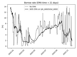Je potřeba udělat 3 týdny v EMA na poměr pk_debt total_debt. Zde je graf výsledku [