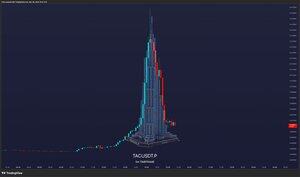 Tato ikonická stavba, která se nachází v Dubaji, má lesklou fasádu zdobenou četnými okny, která odrážejí sluneční světlo během dne a v noci osvětlují městskou krajinu $TAC