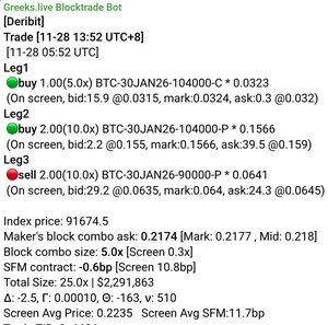 Das Volumen dieser Kombinationsgeschäfte beträgt 25 BTC (2,291,900), der Market Maker bietet ein besseres Angebot und spart im Vergleich zum durchschnittlichen Bildschirmpreis signifikante Kosten.