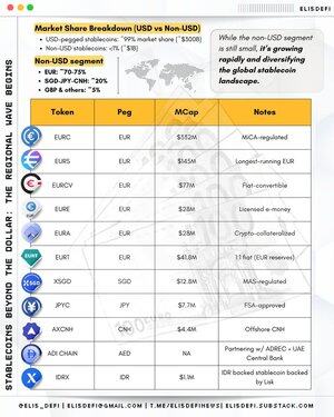 Leur croissance en Europe et en Asie souligne la demande pour des systèmes monétaires numériques régionaux. Le marché évolue vers un avenir où plusieurs devises fortes coexistent on-chain.