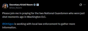 🚨🇺🇸 SECRETARIO DEL DHS NOEM: REZA POR LOS 2 GUARDIAS NACIONALES DISPARADOS EN DC