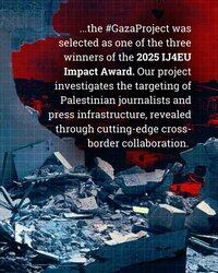 El #GazaProject, que ha alcanzado al menos 34,4 millones de personas y fue citado por el Relator Especial de la ONU @Irenekhan, dio continuidad a la cobertura inconclusa de periodistas palestinos que murieron o resultaron heridos tanto en Gaza como en Cisjordania. Con nuestros socios mediáticos, investigamos el ataque a varios reporteros y edificios mediáticos gazatíes por parte de las fuerzas israelíes y revelamos las estrategias del gobierno israelí para exonerarse de cualquier responsabilidad en la muerte de estos periodistas.