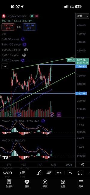 $avgo a franchi son précédent sommet, mais la technique est un indicateur auxiliaire, la demande brute provient du TPU qui a fait une forte publicité pour les ASIC développés en interne.