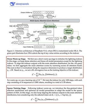 Le nouveau modèle V3.2 de DeepSeek introduit DeepSeek Sparse Attention (DSA), qui réduit la complexité de O(L²) à O(Lk), où k est fixe.