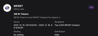 Karena tidak ada yang mengatakan apa-apa tentang Infinit, mereka mengatakan bahwa mereka terus-menerus mendukung dan mengikuti @Infinit_Labs saat melihat proyek dan produk, selain hadiah.