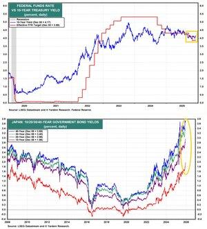 Yardeni: Seperti yang telah kami katakan sebelumnya, konsep FFR netral adalah omong kosong. Tahun lalu, The Fed melonggarkan dengan memangkas FFR sebesar 100bps. Kami tidak setuju dengan langkah itu, dengan alasan bahwa ekonomi tidak membutuhkan pelonggaran seperti itu dan bahwa Bond Vigilantes kemungkinan akan tidak setuju. Benar saja, imbal hasil obligasi Treasury 10-tahun naik 100bps akhir tahun lalu (grafik).