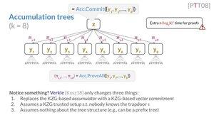 Tapi, sungguh, paradigma Verkle dari pohon Merkle awalan k-ary di mana fungsi hash adalah komitmen vektor pertama kali muncul di [LY10; Sec. 4], meskipun dalam konteks membangun set ZK.