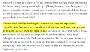 ここには非常にアインシュタイン的な発言があります。研究における美しさとトップダウンのビジョンの価値について: