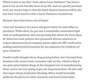 Før han tiltrådte som Harvard-president, havnet Larry Summers i en livlig krangel med en bachelorstudent der han forsvarte beskyttelsen av patentrettigheter for HIV-legemidler i Afrika.