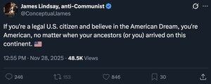 James tvitrer slike feelgood-argumenter uten noen gang å forklare hva den drømmen er, fordi han vet at det er et vagt begrep han kan projisere sine egne verdier inn i og late som det er en objektiv definisjon som gjelder for alle andre.