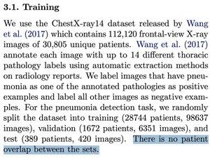 Det samme skjedde i Andrew Ngs artikkel, hvor de utarbeidet et medisinsk datasett for å oppdage lungebetennelse.