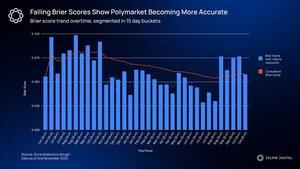 Markten hebben diepte nodig om nauwkeurig te zijn. De gegevens tonen een directe correlatie tussen volume en waarheid. Markten boven de $10M behalen bijna perfecte Brier-scores omdat liquiditeit informatie-asymmetrie dwingt om naar voren te komen en geprijsd te worden.