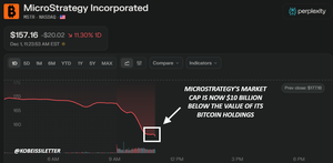 Innymi słowy, kapitalizacja rynkowa MicroStrategy teraz handluje o 10 miliardów dolarów PONIŻEJ wartości ich posiadania Bitcoin.
