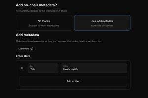 Metadane onchain to kolejna istniejąca funkcja, jednak od tego czasu zaktualizowaliśmy ją, aby umożliwić prostą metodę opartą na CSV do dodawania metadanych do setek inskrypcji jednocześnie.