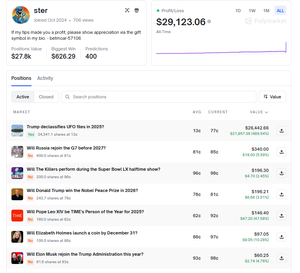 Comerciante do Polymarket @ ster comprando agressivamente "Sim" em Trump desclassificando os arquivos de OVNIs em 2025 por $0,13