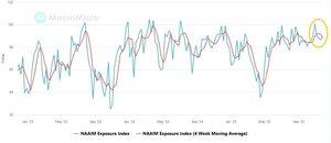 Os dados dos gestores de investimento também estão se aproximando de 90%, o que representa um aumento nas posições compradas dos gestores de investimento. No entanto, é importante notar que, uma vez que esses dados atinjam 100%, isso geralmente indica que os gestores de investimento já estão totalmente alocados, e não haverá capital suficiente para novas compras. Embora atualmente estejamos em um nível alto, ainda há espaço para novas compras.