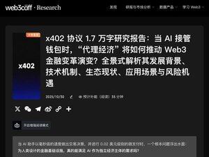 O protocolo x402 traz pagamentos por proxy para uma fase protocolar, construindo uma camada de execução de valor e confiança para a economia de AI e Web3. O relatório desta edição (@Web3Caff_Res) (por @0xClareYang) analisa profundamente o modelo de pagamento do protocolo x402, o processo em quatro etapas e o mecanismo de pagamento entre cadeias, além de discutir os desafios em termos de expansão ecológica, segurança do sistema e sustentabilidade a longo prazo.