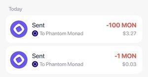 Acabei de transferir 100 $MON e recebi esta mensagem do MetaMask.