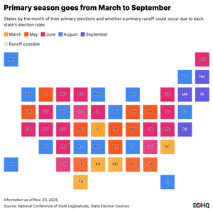 A época das festas está aqui, o que significa que 2026 está à porta. A DDHQ preparou um Guia Primário de 2026 cobrindo o calendário das primárias do próximo ano, que se estende de março a setembro. Todos os estados. Todas as corridas notáveis.