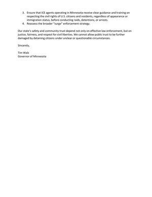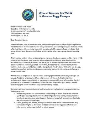 Forța, lipsa comunicării și practicile ilegale manifestate de agenții federali nu vor fi tolerate în Minnesota.