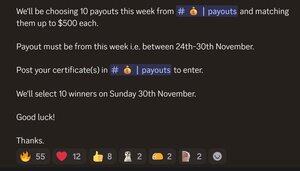 Опубликуйте свой сертификат выплаты в Discord, чтобы участвовать.