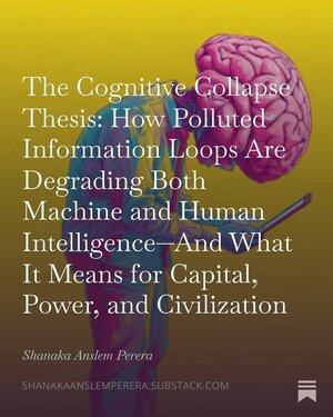 Платформы оптимизируют для вовлеченности. Контент, оптимизированный для вовлеченности, ухудшает данные для обучения ИИ. Ухудшенный ИИ производит ухудшенный контент. Люди, потребляющие и делегирующие этим системам, испытывают когнитивный упадок. Эти люди производят контент, который становится данными для обучения.