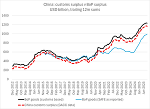 Одним из более раздражающих аспектов данных о платёжном балансе Китая после 2022 года является то, что прогнозирование платёжного баланса требует прогнозирования корректирующего фактора, который SAFE применяет к данным таможни