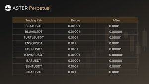 För att förbättra prisnoggrannheten och den övergripande handelsupplevelsen kommer Aster att justera pristickstorleken för följande Perpetual trading-par vid:
