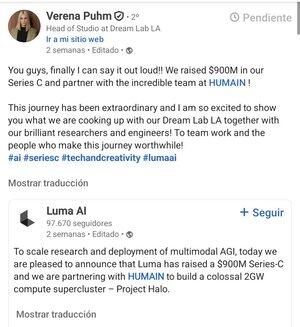 Luma'nın büyük 900 milyon dolarlık zam @verenapuhm'i tebrikler. Bu oyuncunun Google ve OpenAI gibi devlerle karşılaşmasını görmek gerçekten ilginç olacak.
