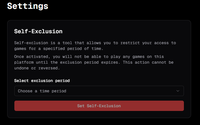 来自我们一些基于运气的游戏的非常酷的倡议 @AbstractChain 自我排除设置允许用户在指定的时间段内限制访问