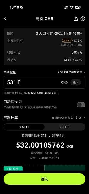 对于短鸟来说,ok今天上了okb的双币盈利是最大的好消息 之前okb的理财,年化1% 我刚看了下3天双币盈 我530个okb,3天可以拿500刀 还行吧,总比没有强😂😂😂 @wanghebbf
