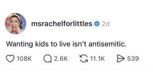 瑞秋女士因这条帖子被列入年度反犹太主义者前十名名单。