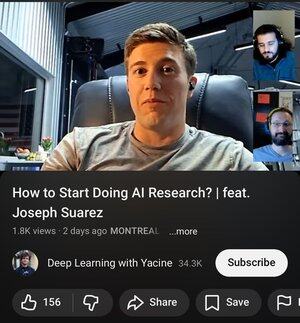 如果你在从事/学习AI,这次采访简直是金子般的机会。以下是你需要了解的关于成为AI研究员的事项: > 实际上没有什么前提条件会阻碍你 > 选择一个你非常感兴趣的领域并全心投入。不要疯狂地改变方向。 > 保持长时间不被打扰的工作。消除干扰,专注于做事情。 观看这个视频,特别是@jsuarez5341谈论他自己的旅程和在RL方面的工作那部分。@yacinelearning 很棒的视频 🤘🏻