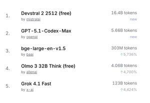Devstral 2 在 @OpenRouterAI 上排名第1!在 Mistral Vibe 中免费试用: → uv tool install mistral-vibe