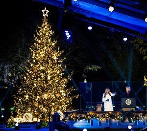 .@POTUS 在华盛顿的椭圆形广场上,@FLOTUS 点亮国家圣诞树后握住她的手。