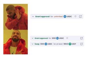 为了加密货币的爱: 代币批准应与交换、存款等一起批量处理。 这可以保护您的安全,并消除撤销批准的需要。想要这个吗?查看评论。