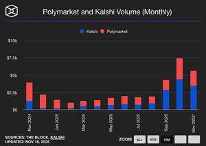 Polymarket + Kalshi 在 2024 年至 2025 年中期大部分时间都在不断上涨…… 然后交易量猛增。 我们现在的月交易量达到了 70 亿美元,而钱包增长同比上升了 400%。 空投和美国市场的接入使这一领域成为加密货币中增长最快的行业之一。