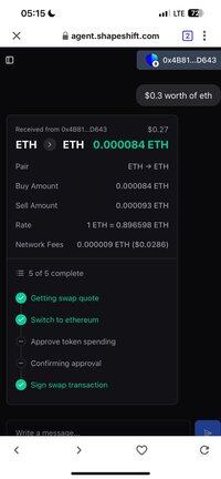 本周,我决定直接从我的Trust Wallet测试ShapeShift AI代理,不仅仅是点击,而是实际执行操作、提问并进行真实的跨链交换。