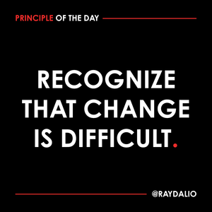 任何需要改變的事情都可能是困難的。然而,為了學習、成長和取得進展,你必須改變。面對變化時,問問自己:我是否保持開放的心態?還是我在抵抗?直面你的困難,強迫自己探索它們的根源,你會發現你會學到很多。 #principleoftheday