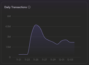 monad 每日平均交易量約為 250 萬筆 這是網絡在約 0.3% 的容量下運行 - 還有超過 300 倍的活動空間 monad 是為了擴展而建造的