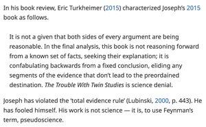 整篇文章對雙胞胎研究的荒謬攻擊進行了令人難以置信的駁斥。我強烈推薦閱讀。
